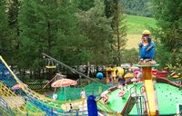 eine Kart-Bahn, ein Multifunktionsfeld, Trampoline, eine Boulderwand und ein riesiger Klettervulkan zum Erklimmen.