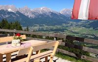 The Berggasthof Biberg (Berli's Hütte) is located at 1400m above sea level. From the Huggenberg car park, it takes normal hikers around 75 minutes to cover the 280 metres in altitude. The breathtaking view over the surrounding mountains is famous far and wide, from the Steinernes Meer you can see as far as the Hochkönig massif, the Dientner Grasberge and the Hohe Tauern.
