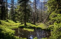 The Rauris primeval forest at the Kolm Saigurn valley head is one of the most popular excursion destinations in the Rauris Valley. In summer, the centuries-old, unspoilt Sturzwald forest welcomes visitors with over 80 dark moorland pools, spruce trees, stone pines, lush green mosses and romantic clearings. In winter, the Rauris primeval forest can be explored with snowshoes.