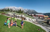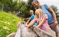 Toni’s alpine playground on the Karbachalm, high above Mühlbach am Hochkönig, means fun and adventure for the whole family. Up there, numerous play stations make every child’s heart beat faster. In their own water and sand playground, the little ones can let their creativity run wild. The urge to move is satisfied with the climbing tower, slacklines, and alpine Frisbee. Relaxation and barbecue spots invite the whole family to unwind. Also, a small hike is a must during a trip to Karbachalm. The surrounding hiking trails have been designed barrier-free, so that parents with children and strollers can stroll comfortably.
