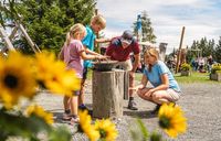 Chamois, foxes, golden eagles, deer and co. are masters at playing hide and seek and only the lucky ones can tell you about an encounter. On this exploratory tour along the nature trail, however, you are guaranteed to come across a devout golden eagle, a playful chamois, a curious marmot, a cunning fox and a magnificent stag. The life-size wooden figures can even be stroked. The absolute highlight of the nature trail: the majestic Alpine ibex - the "King of the Alps" - awaits a visit at the end in full size and in the flesh in the large ibex enclosure. And with a lot of luck, you can spot the animals in their natural habitat through the large binoculars at the Ossmannalm.
