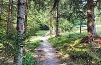 The ascent starts in the centre of Leogang and leads between slightly ascending meadows and - partly shady - forest paths up to the alpine pasture. The partly shady path also allows young or older hikers to make the ascent. Children can romp around to their heart's content in the children's playground or get up close to the alpine animals.