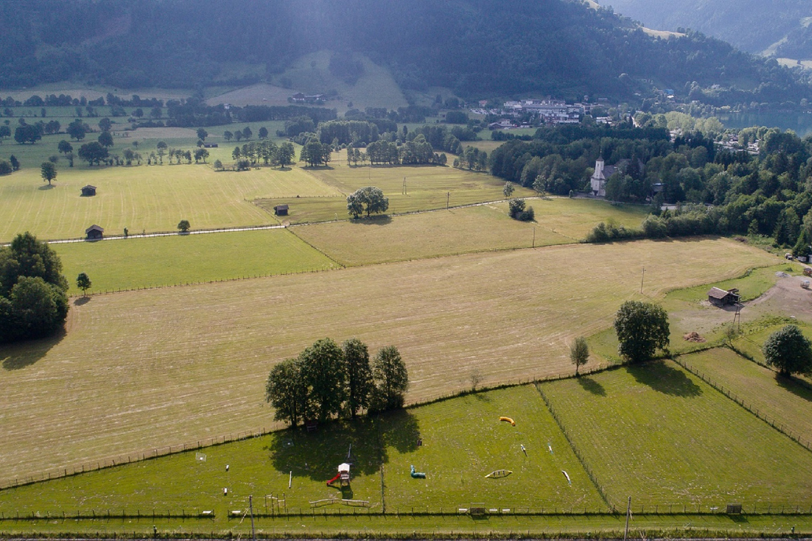 Our 10,000 m² private dog meadow with separate off-leash areas offers your dog a true play and training paradise. All areas are securely fenced (1.70 m fence height) for carefree play. From April to November, your dog can also enjoy our agility course to improve their skills and fitness.