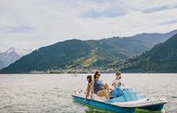 From May to September, pedal boats, electric boats, rowing boats, and SUP boards are available for rent, just about 200m from the Maishofner Strandbad (right next to the Seecamp campsite).